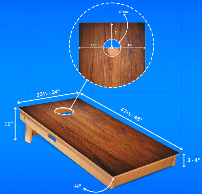 Each player is given four bean bags. Players stand about 30 feet from the board and alternate throwing the bags, on at-a-time, toward the board. After each player has thrown their four bags, cancellation scoring is performed. That is, each player tally’s up their score (three points for each of their bags that went through the hole, and one point for each of their bags that’s on the board). If player 1 has more points than player 2, player one scores the difference in points. If player 2 has more points than player 1, player 2 scores the difference in points. If both players have the same number of points, then neither player scores any points. As an example, suppose that player 1 had two bags go through the hole and one bag on the board and player 2 had four bags on the board. The result is that player 1 would score three points for that round.